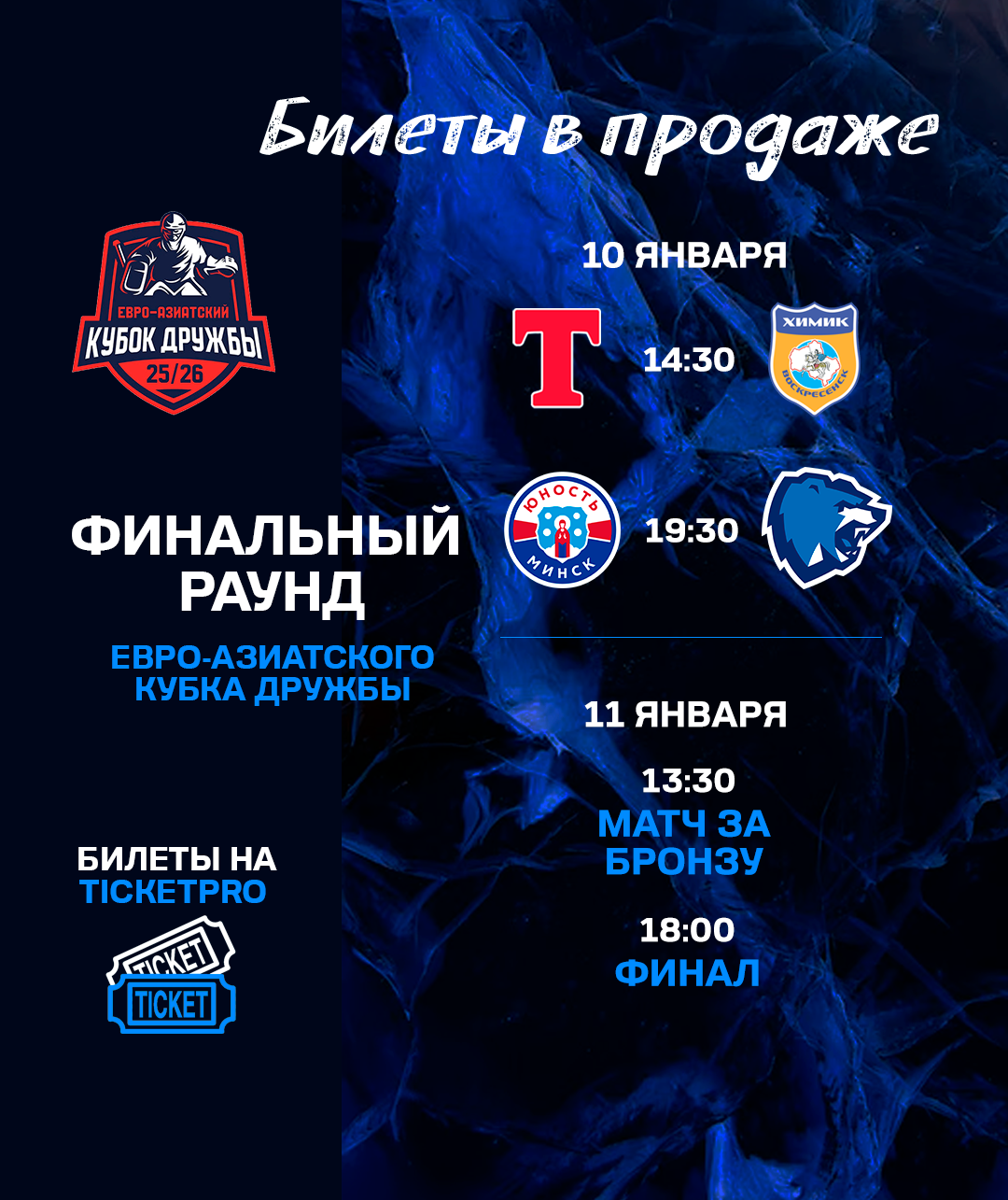 10 и 11 января 2026 года на «Чижовка-Арене» пройдет финальный раунд Евро-Азиатского Кубка Дружбы, в котором сыграют «Витебск», минская «Юность», нижегородское «Торпедо-Горький» и воскресенский «Химик».