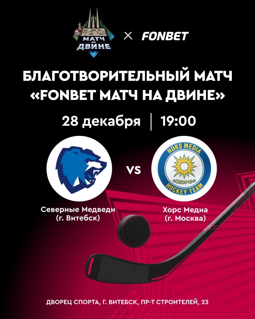 28 декабря в 19:00 во Дворце спорта пройдет благотворительный матч «ФОНБЕТ Матч на Двине»!