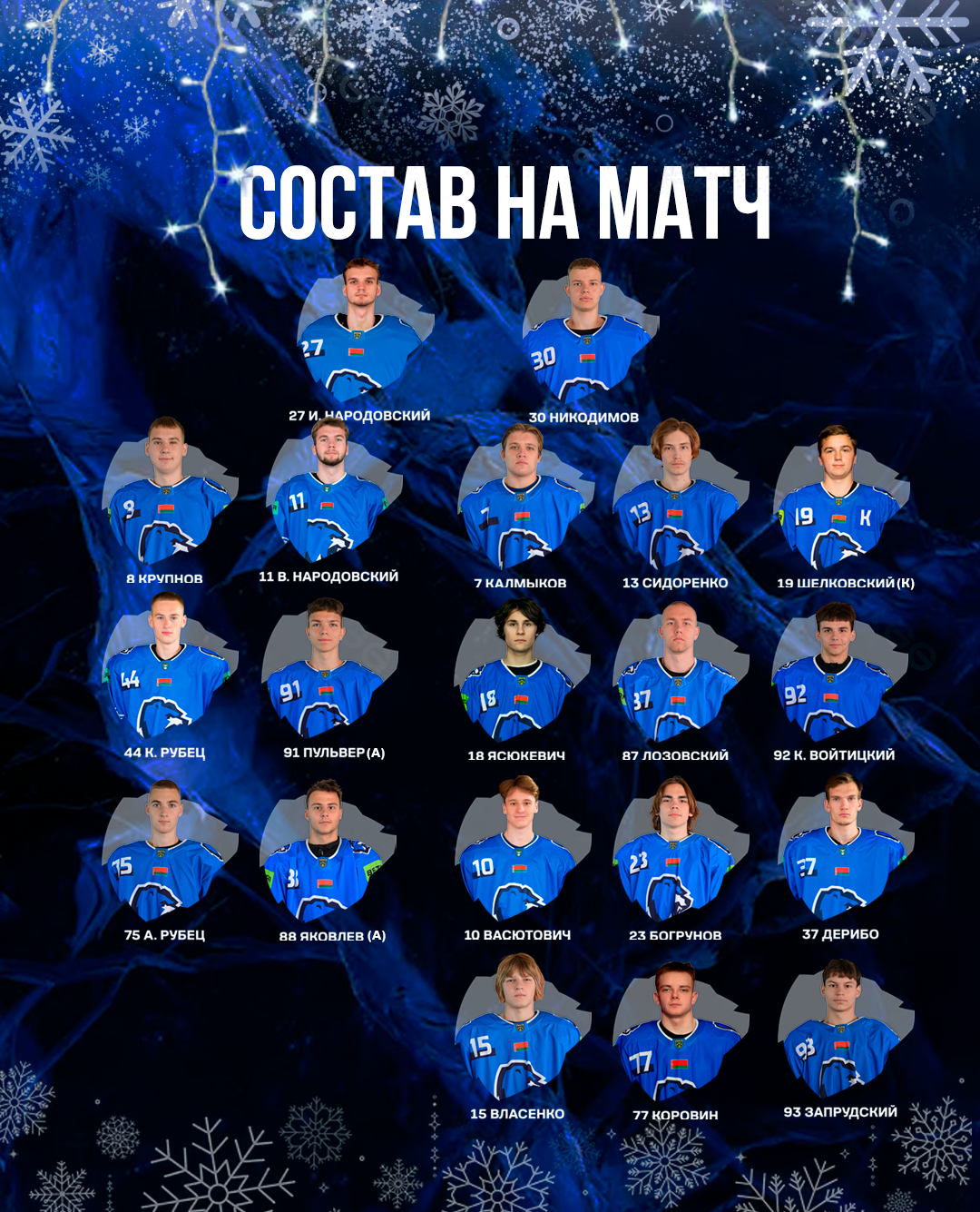 МЕДВЕДИ: И. Народовский (Никодимов); В. Народовский – Крупнов, Калмыков – Шелковский (К) – Сидоренко; К. Рубец – Пульвер (А), Ясюкевич – К. Войтицкий – Лозовский; А. Рубец – Яковлев (А), Богрунов – Дерибо – Васютович; Коровин – Запрудский – Власенко.