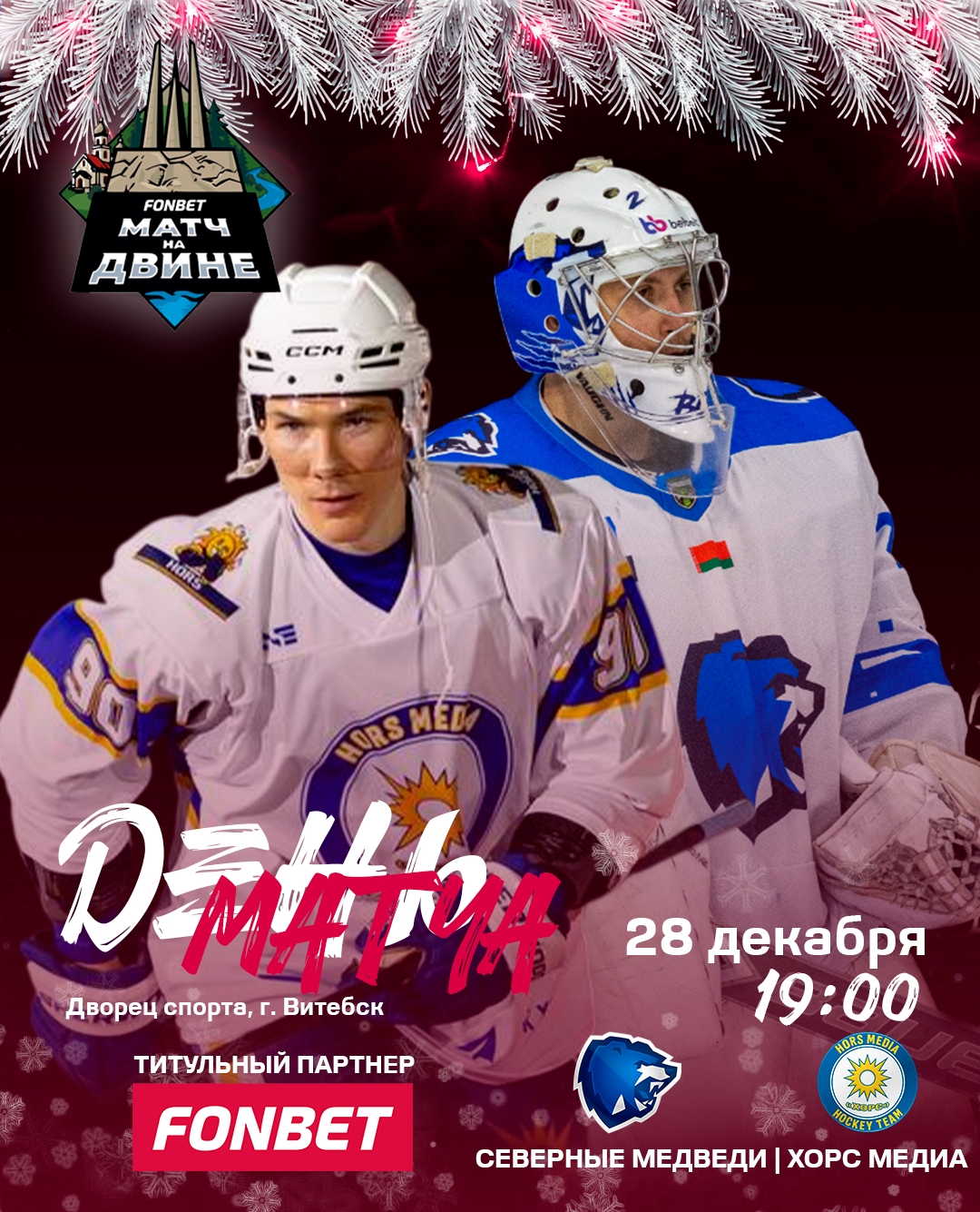 Напоминаем, что сегодня, 28 декабря, пройдет благотворительный хоккейный матч «FONBET Матч на Двине».