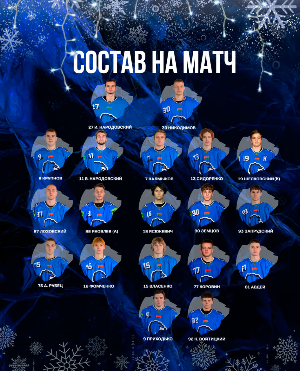 МЕДВЕДИ: И. Народовский (Никодимов); Крупнов – В. Народовский, Калмыков – Шелковский (К) – Сидоренко; Лозовский – Яковлев (А), Ясюкевич – Запрудский – Земцов; Рубец – Фомченко, Власенко – Авдей – Коровин; Приходько – Войтицкий.