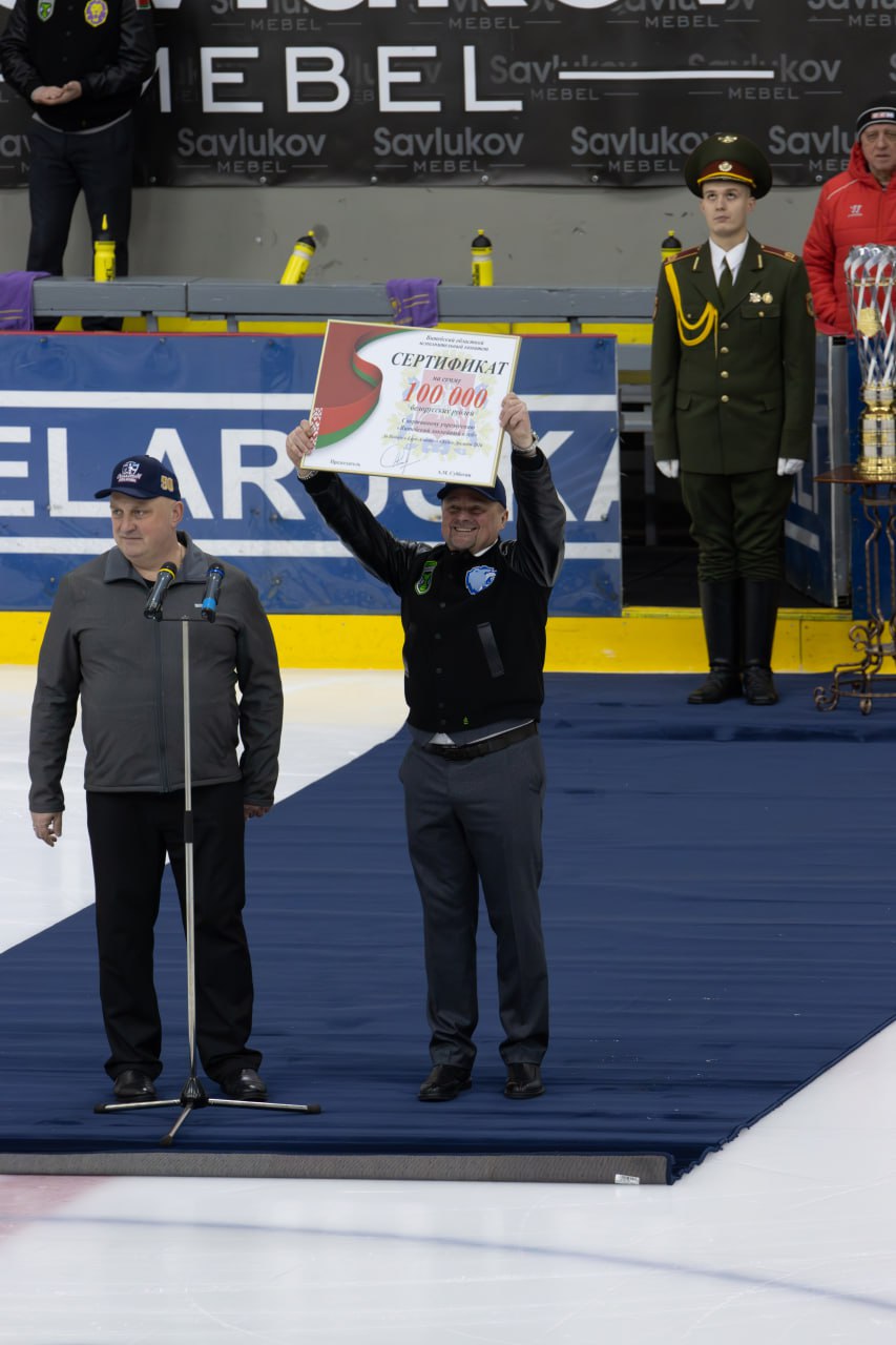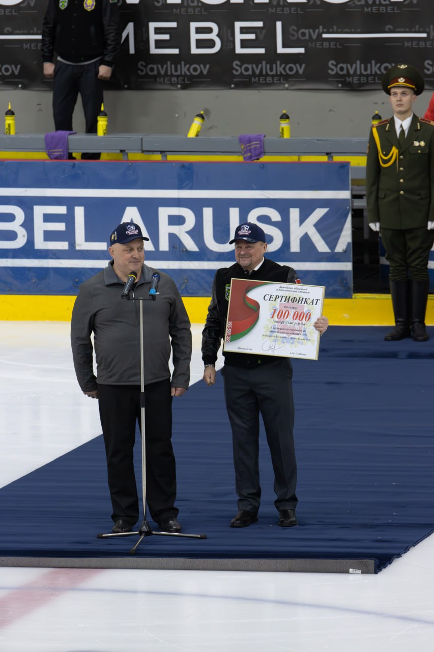 Также в своем выступлении Дмитрий Демидов отметил, что председателем витебского облисполкома Александром Михайловичем Субботиным принято решение премировать ХК «Витебск» в размере 100000 рублей и вручил директору клуба Руслану Солодкину денежный сертификат.