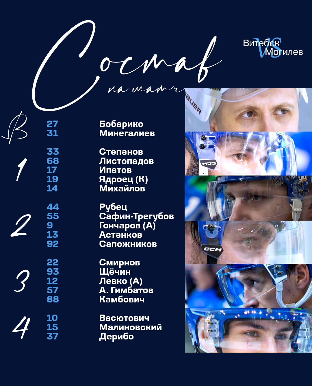 МОГИЛЕВ: Кропова (59:12); Шаборшин – Можаев, Тимирев – Козинов (А) – Бякин; Арбузов – Татаренко, Сергушкин (К) – И. Шапиро – Овечкин; Сушко – Прохоренко, Левша – Малюченко – А. Шапиро; Ермоленко – Никулин – Матлахов; Воробьев