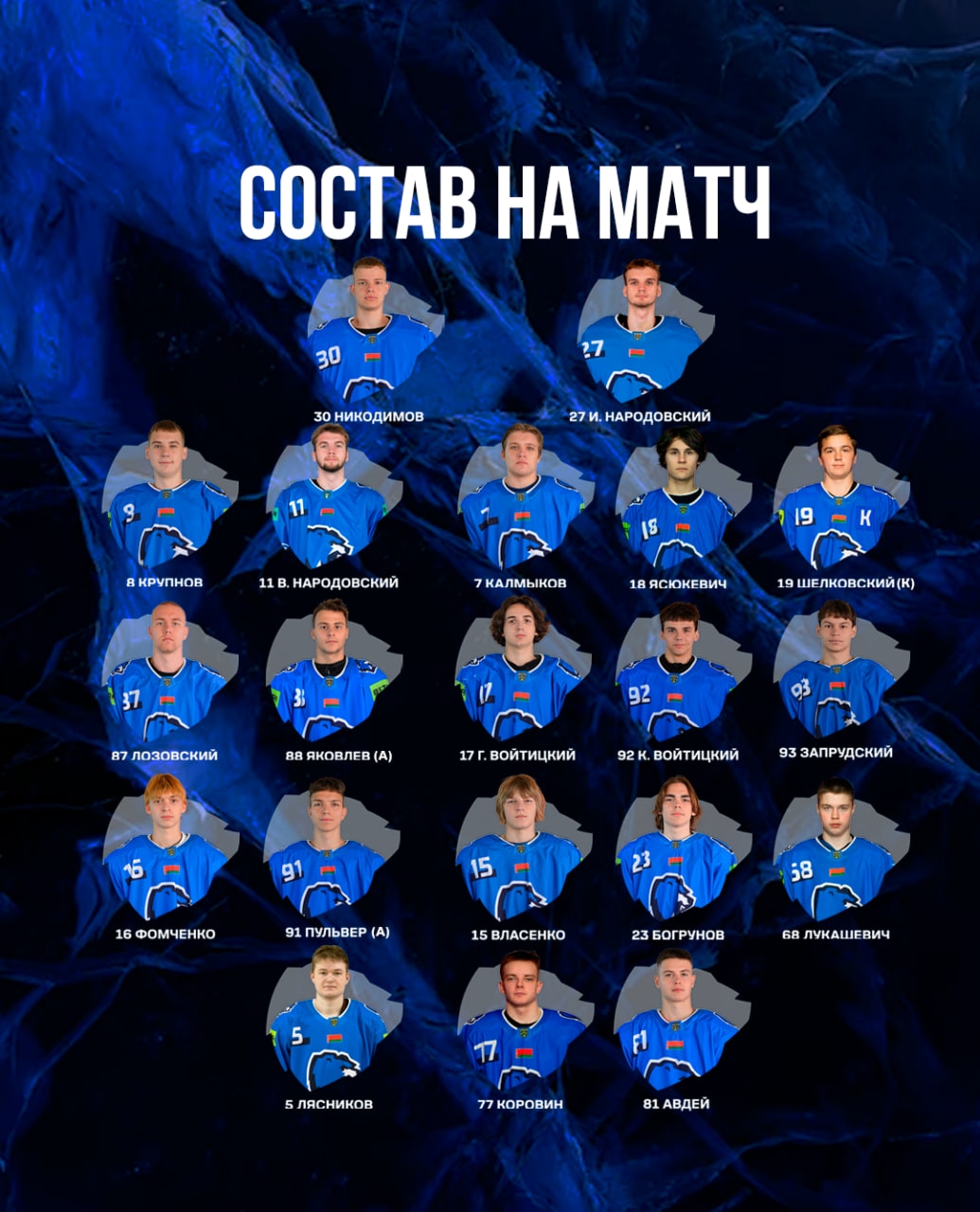 МЕДВЕДИ: Никодимов (И. Народовский); В. Народовский – Крупнов, Калмыков – Шелковский (К) – Ясюкевич; Лозовский – Яковлев (А), Г. Войтицкий – Запрудский – К. Войтицкий; Пульвер (А) – Фомченко, Богрунов – Лукашевич – Власенко; Лясников, Коровин – Авдей.