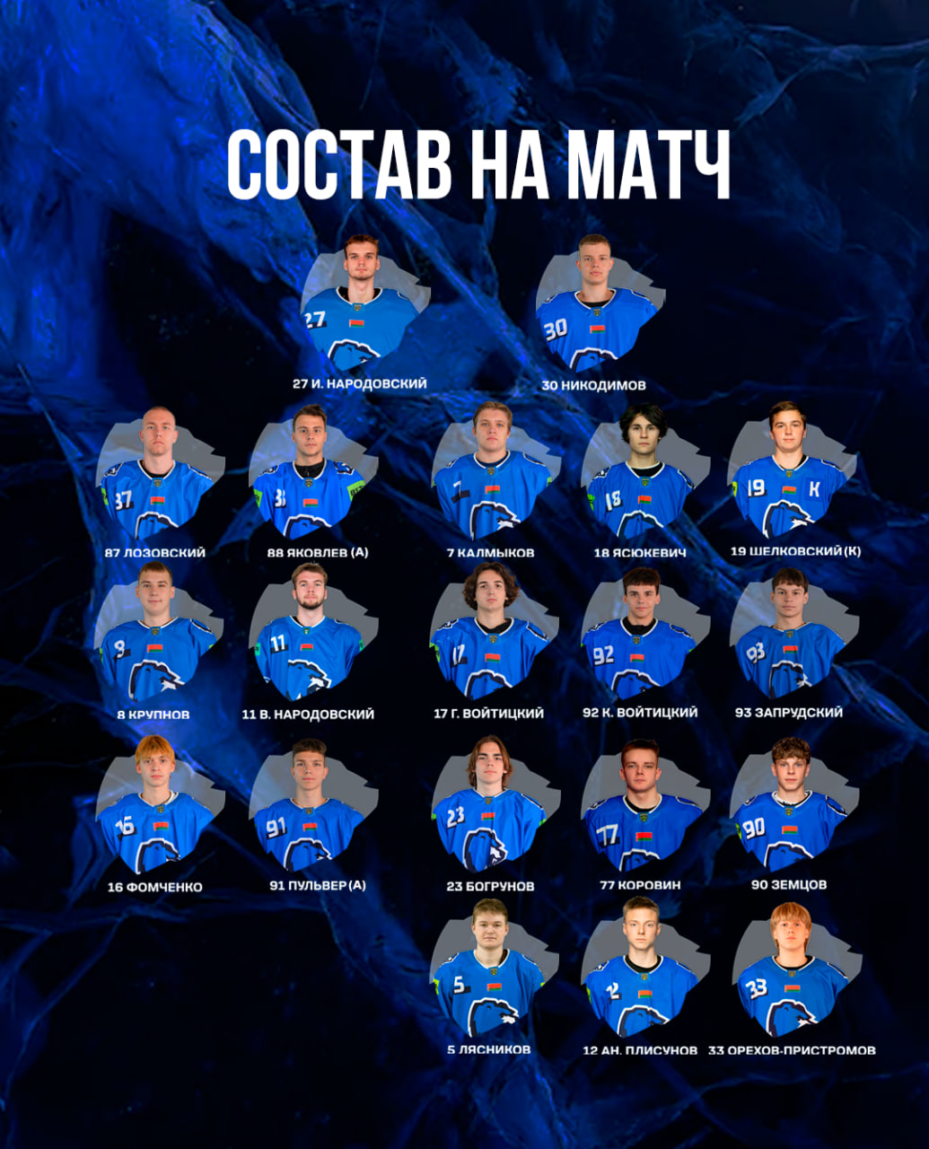 МЕДВЕДИ: И. Народовский (Никодимов); Лозовский – Яковлев (А), Калмыков – Шелковский (К) – Ясюкевич; В. Народовский – Крупнов, Г. Войтицкий – К. Войтицкий – Запрудский; Пульвер (А) – Фомченко, Земцов – Коровин – Богрунов; Ан. Плисунов – Лясников – Орехов-Пристромов.
