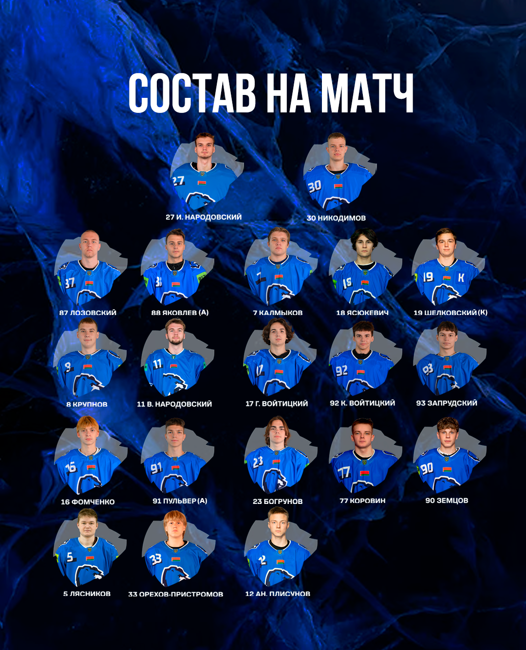 МЕДВЕДИ: И. Народовский (Никодимов); Лозовский – Яковлев (А), Калмыков – Шелковский (К) – Ясюкевич; В. Народовский – Крупнов, Г. Войтицкий – К. Войтицкий – Запрудский; Пульвер (А) – Фомченко, Земцов – Коровин – Богрунов; Орехов-Пристромов – Лясников, Ан. Плисунов.