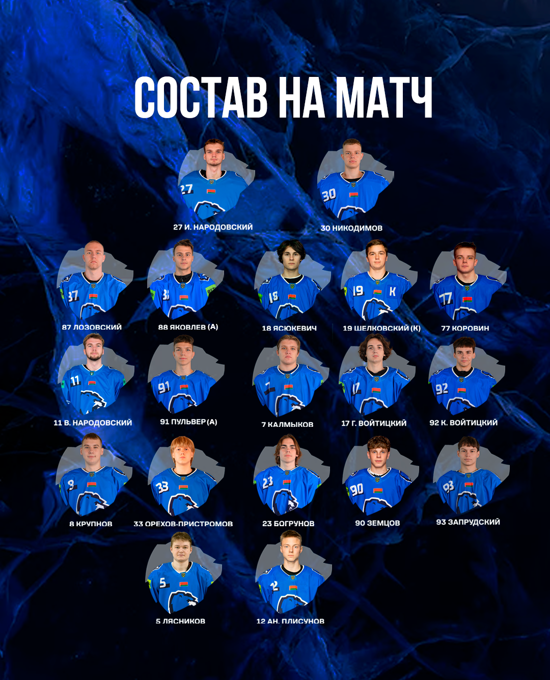 РЫЦАРИ: Зенюк (Кулис); Енко – Балацкий, Шендрик – Скорупич (К) – Гатауллин (А); Шилин – Лавкель, Загородин – Ганевич (А) – Жидких; Костко – Юхневич, Акулов – Шумский – Ивуть; Хворов, Н. Климович, Странадкин.